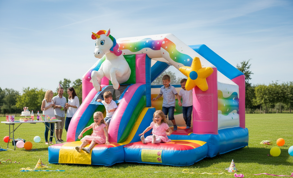 Magische Momente mit der Profi-Hüpfburg "Slide Combo Einhorn"